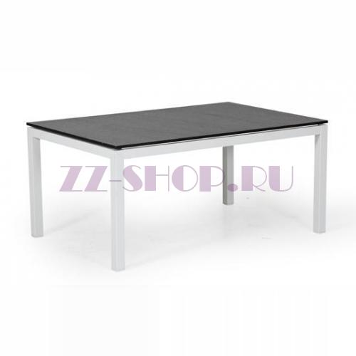 Небольшой журнальный столик Leone имеет каркас из алюминия и белую матовую стеклянную столешницу.