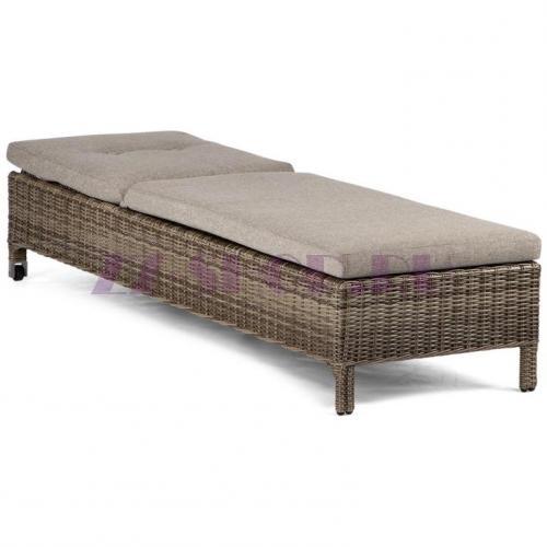 Лежак Soho выполнен из искусственного ротанга натурального цвета на алюминиевом каркасе.Угол наклона спинки можно регулировать.