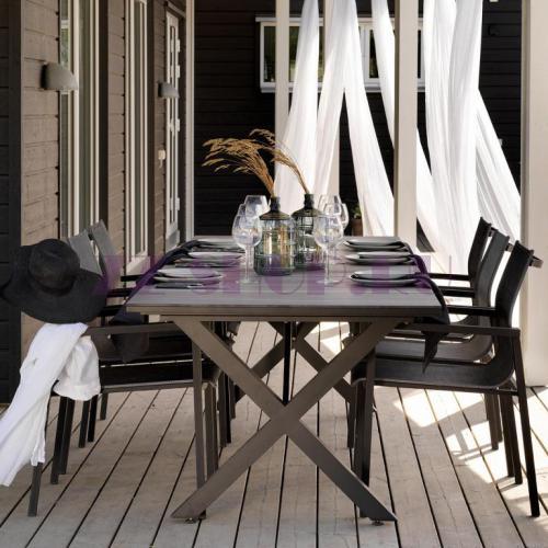 Обеденный стул из серии Belfort из алюминия с текстиленом чёрного цвета.