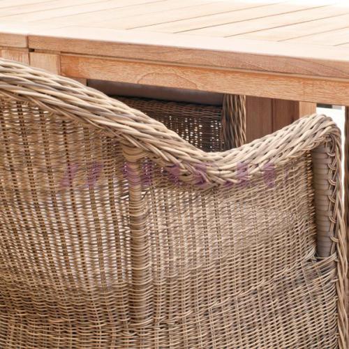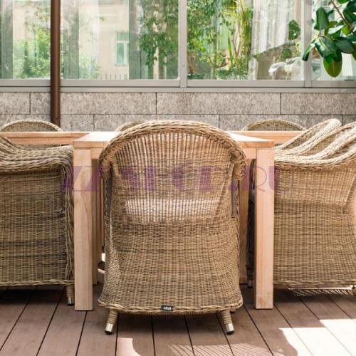 Каркас изделия выполнен из прочного алюминия, ножки оплетены ротангом, что гарантирует продолжительный срок службы модели.