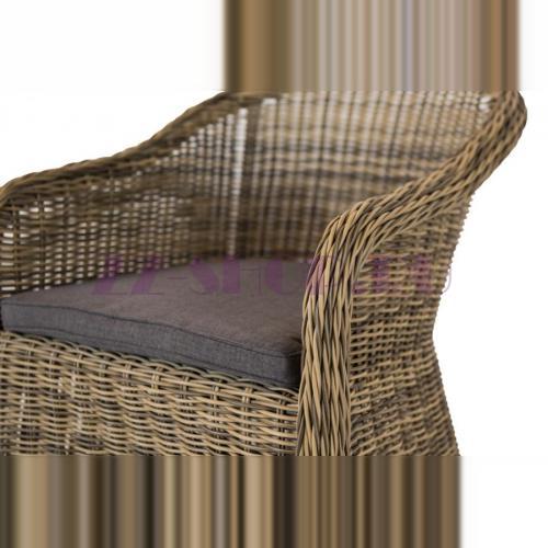 Кресло Равенна С из искусственного ротанга оригинальной формы с подлокотниками.