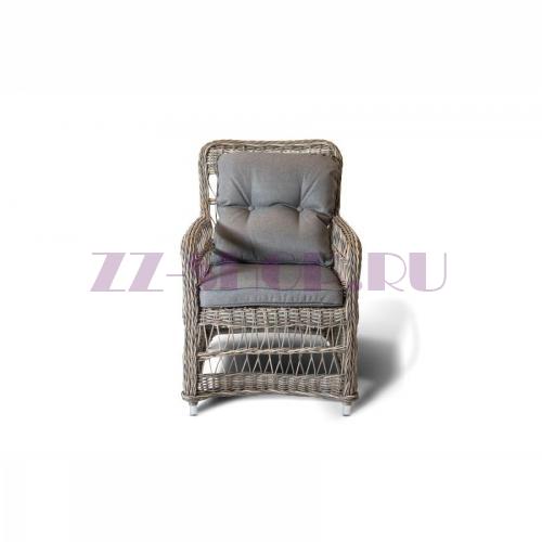Кресло Цесена из искусственного ротанга оригинального плетения с эргономичными подлокотниками.