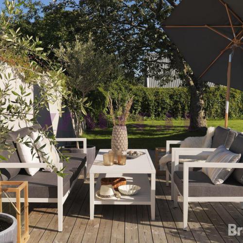 Подушки серого цвета в комплекте, выполнены из высококачественной ткани Sunbrella.