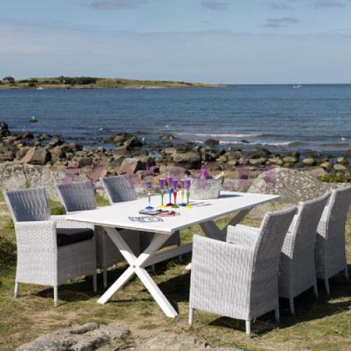 Удобное кресло классической формы прекрасно сочетается как со столами из искусственного ротанга, так и из массива сосны и акации