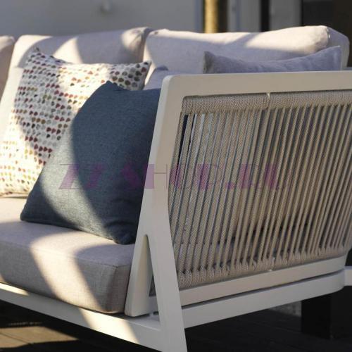 Sevran двухместный диван.Sevran - это очень удобная и элегантная серия из алюминия с матово-белой рамой, светло-серыми подушками и серыми веревками из синтетического ротанга.