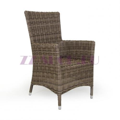 Кресло с подлокотниками из коллекции Ninja из искусственного ротанга коричневого цвета на алюминиевом каркасе.Подушка не включена в комплект и приобретается отдельно.