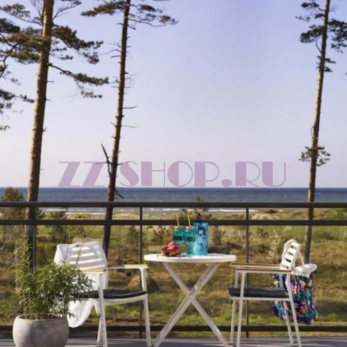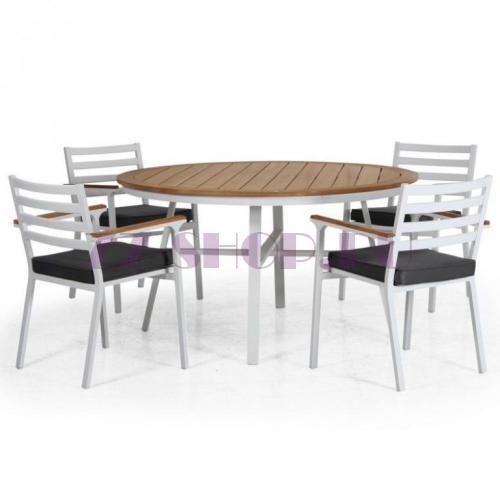 Кресло обеденное Olivet из белого алюминия с тиковыми подлокотниками.Подушка серого цвета в комплекте.