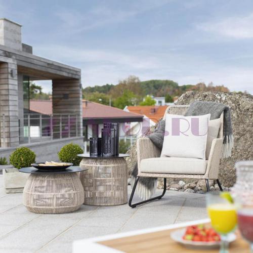 Кофейный столик Pamir из синтетического ротанга со столешницей из алюминия.- brafab