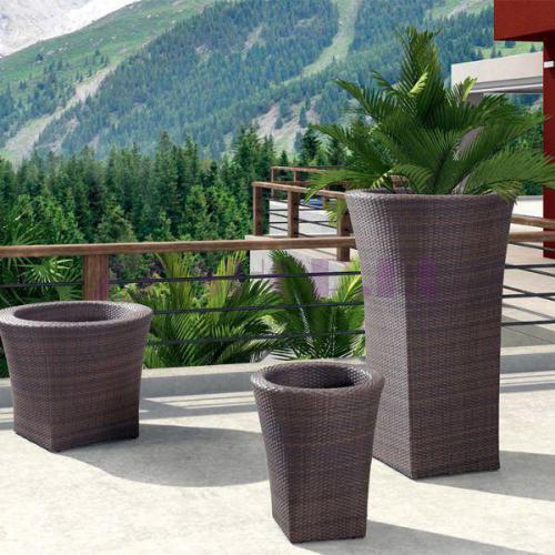 Ваза из искусственного ротанга "Барлетта" выполнена из высокопрочного материала устойчивого к влаге и земле, не скапливает мошек и дает растению дышать. Алюминиевый каркас, искусственный ротанг, плетение плоское.