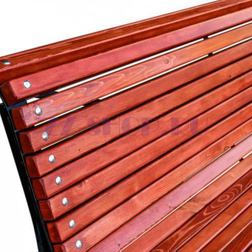 Сиденье и спинка: Брус из хвойных пород древесины - сосна/ель (варианты исполнения: лиственница, композитные материалы) различного сечения. Огнебиозащитные пропитки + тонировочный состав с антисептиком + два слоя яхтного лака с промежуточным шлифованием. Возможность выбора цвета из палитры.