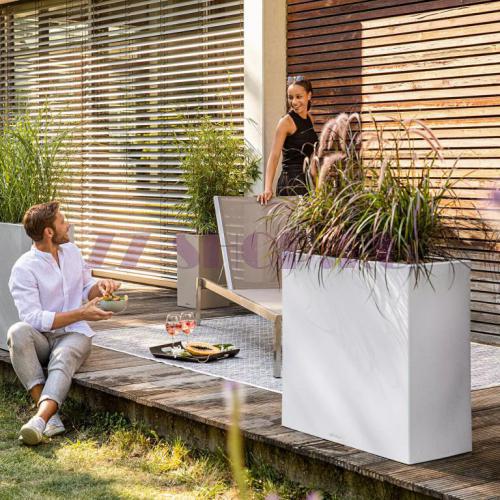 Удлиненный кашпо стильно разграничивает пространство, разделяет офисы и создает уединение для садов и террас. При высоте более 75 см CANTO Stone обеспечивает эффективную защиту от посторонних глаз, создавая домашнюю атмосферу.