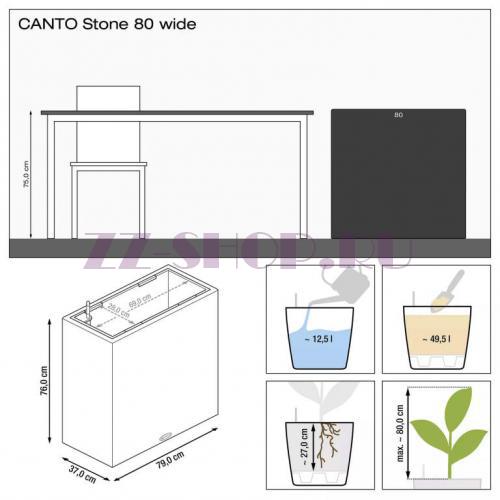 Кашпо LECHUZA CANTO WIDE Stone 80 Черная графитовая крошка