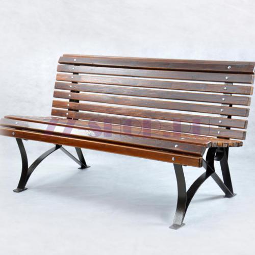 Данную скамейку очень удобно использовать для отдыха на садовом участке, так как благодаря форме на ней можно сидеть, откинувшись (как в кресле).