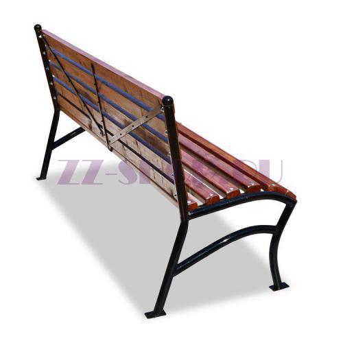 Отличительной особенностью данной модели является мощный металлический каркас, который при необходимости можно забетонировать, что позволяет использовать скамейку на не охраняемых участках парковой зоны или зоны городской среды.