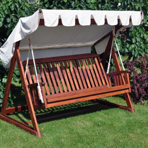 Садовые качели Bastad выполнены из массива сосны в цвете капучино.Сидение крепится к каркасу качелей с помощью каната.
