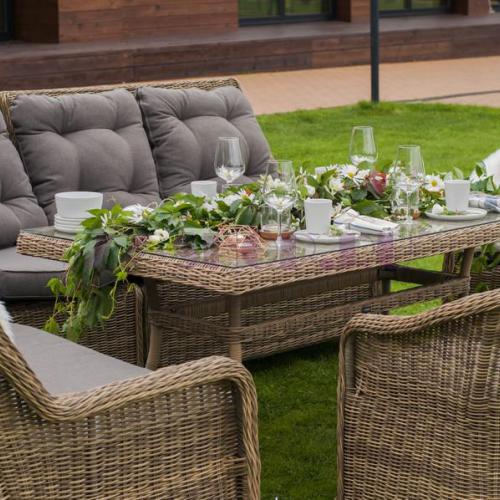 - Высококачественный и неприхотливый искусственный ротанг серо-желтого оттенка