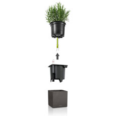 Например, композиция с маленьким кашпо будет отлично смотреться в качестве украшения стола как в городском, так и загородном интерьере. Встроенная система автополива с емкостью для воды надежно снабжает растения влагой и удобрениями.
