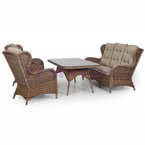 Кресло 5641-62 Evita выполнено из искусственного ротанга нового светло-коричневого цвета на алюминиевом каркасе.