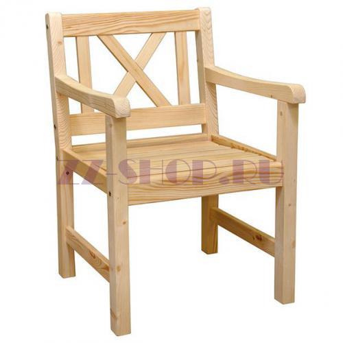 Кресло из массива сосны, с подлокотниками. Окрашено в цвет коньяк.