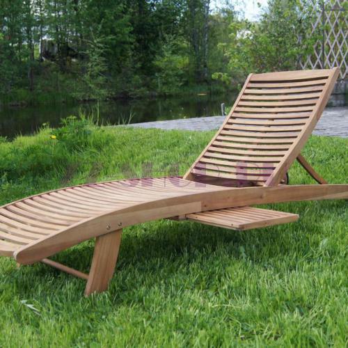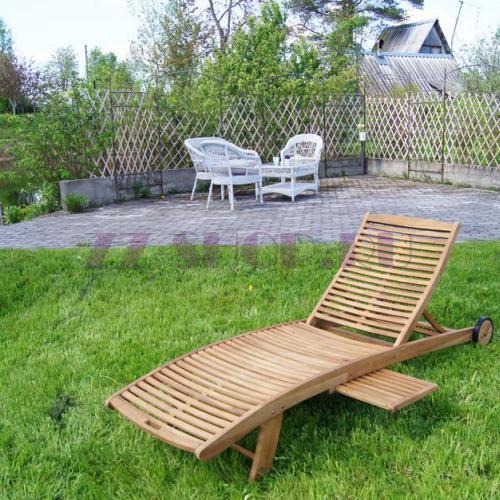 Лежак Oxford произведен из акации, он оборудован колесами для комфортного перемещения и регулируемой спинкой.