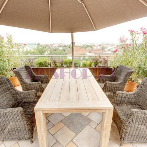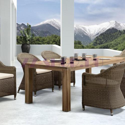 Роскошный стол Витория прямоугольной формы из благородного тикового дерева, которое славится своей долговечностью.