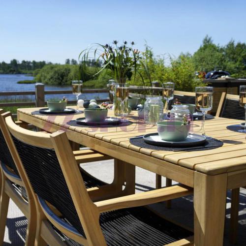 Большой обеденный стол из тика Agios.Так же в коллекцию входит двух и трехместные диваны с журнальным столом.