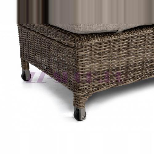 Лежак Soho выполнен из искусственного ротанга натурального цвета на алюминиевом каркасе.Угол наклона спинки можно регулировать.