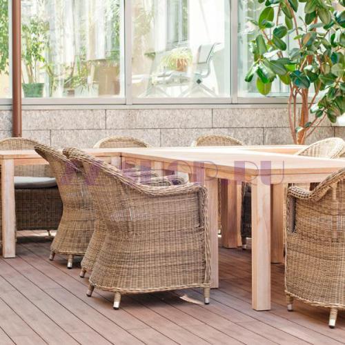 Каркас изделия выполнен из прочного алюминия, ножки оплетены ротангом, что гарантирует продолжительный срок службы модели.