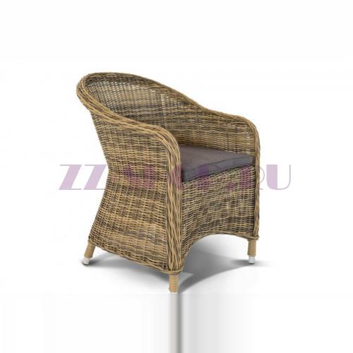 Кресло Равенна С из искусственного ротанга оригинальной формы с подлокотниками.
