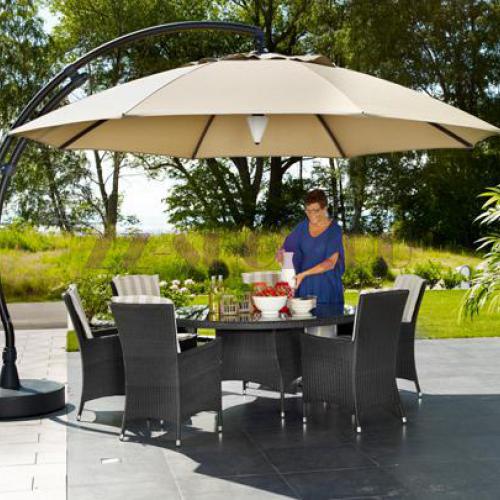 Он выполнен из искусственного ротанга черного цвета на алюминиевом каркасе.