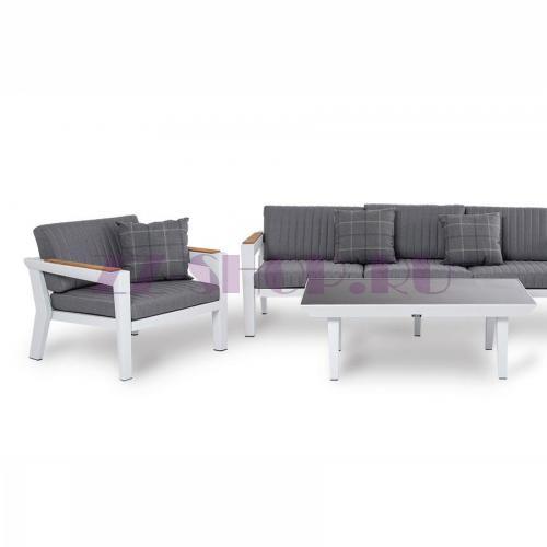 - Подушки выполнены из водостойкой полиэфирной ткани для защиты мебели от дождя и солнца