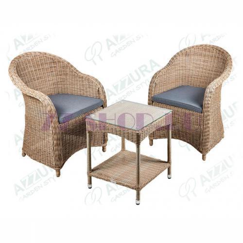 Кресло изготовлено из полукруглого искусственного ротанга.