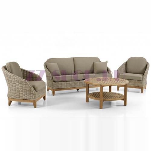 Плетеный двухместный диван Ontario изготовлен из искусственного ротанга бежевого цвета на алюминиевом каркасе.