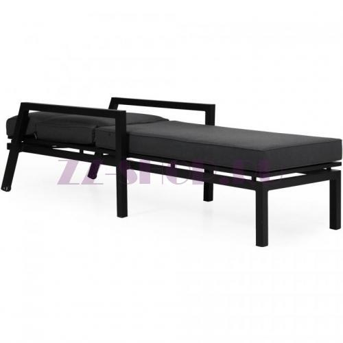 Belfort Лежак из алюминия в черном цвете с серыми подушками. Имеет регулируемую спинку.Очень удобен благодаря толстым подушкам. Чехлы подушек съемные.