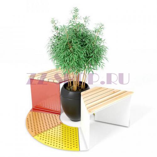 Сиденье и спинка: Брус из хвойных пород древесины - сосна/ель (варианты исполнения: лиственница, композитные материалы) различного сечения. Огнебиозащитные пропитки + тонировочный состав с антисептиком + два слоя яхтного лака с промежуточным шлифованием. Возможность выбора цвета из палитры.