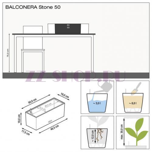 Кашпо BALCONERA Stone изготовлено из высококачественного, стойкого к атмосферным воздействиям пластика. Система автополива LECHUZA обеспечивает оптимальное снабжение растений влагой и удобрениями, как в природе. Красочные растения и цветы, непринужденная атмосфера и уютные часы на солнце ? вот как представляется идеальный балкон, где вы можете просто отключиться от работы и отдохнуть в центре города.