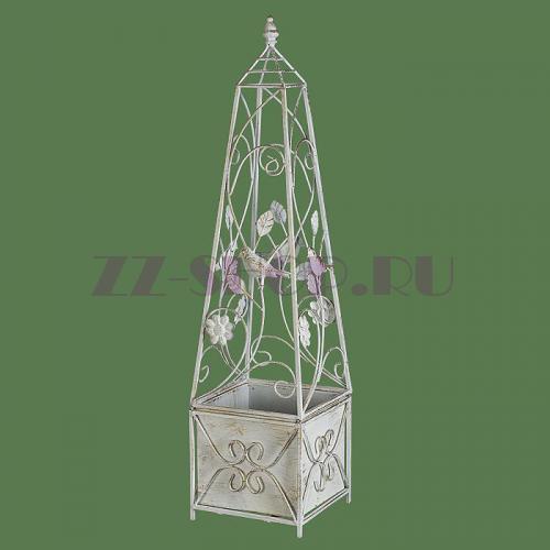 Кованая уличная подставка для цветов - кашпо Пирамида, цвет Белый