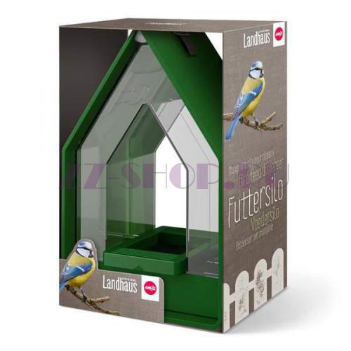 Бункерная кормушка Landhaus полностью соответствует этим критериям: кормовой запас находится в защищенном от загрязнений и сырости пространстве и подается постепенно небольшими порциями. Она изготовлена из гигиенического и прочного пластика, разбирается в целях облегчения чистки, и ее даже можно мыть в посудомоечной машине.