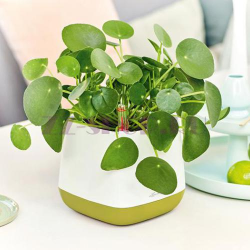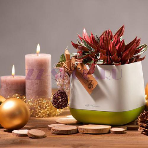 Кашпо (пластик) Lechuza Pot Yula Complete (White/Green), 17*17*H15 см