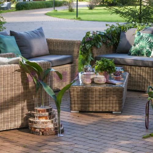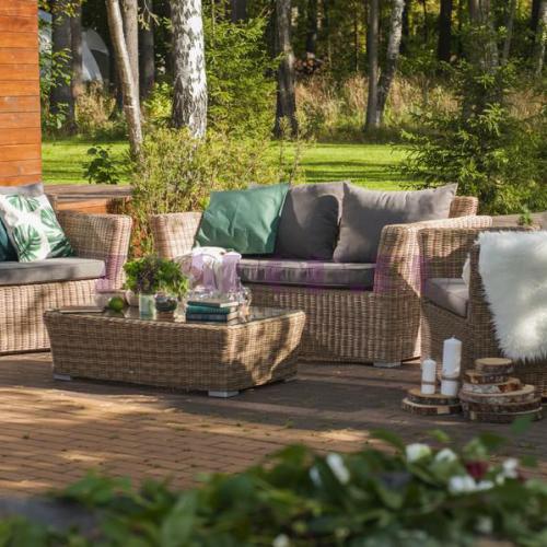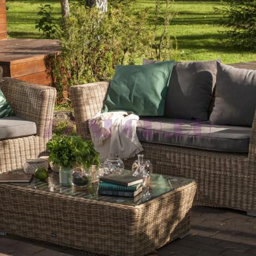 - Высококачественный и неприхотливый искусственный ротанг серо-желтого оттенка