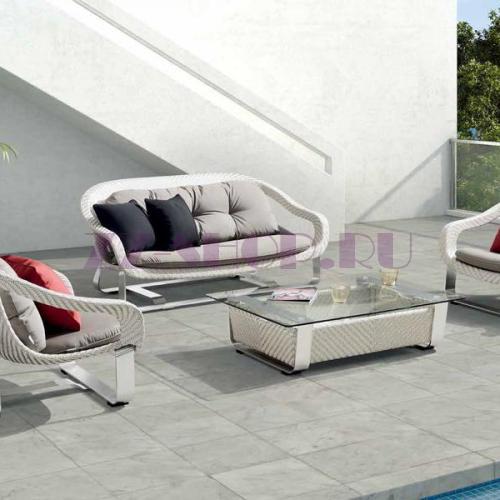 - Подушки выполнены из водостойкой полиэфирной ткани для защиты мебели от дождя и солнца