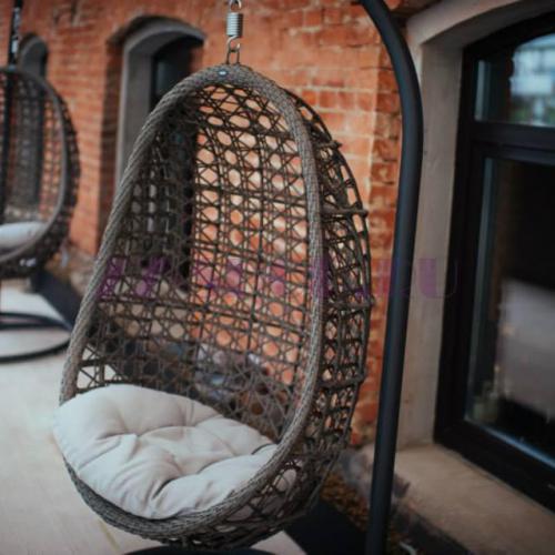 Подвесные кресла из искусственного ротанга, плотного плетения, в комплекте с подушкой.