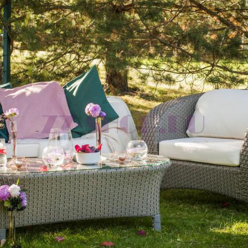 - Подушки выполнены из водостойкой полиэфирной ткани для защиты мебели от дождя и солнца