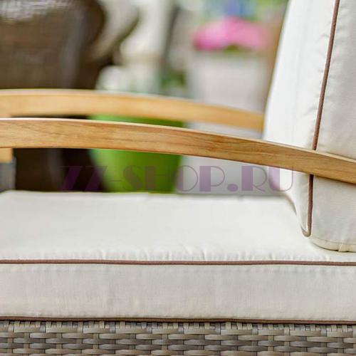 Кресло Верона из искусственного ротанга комплектуется подушками со съемными чехлами молочного цвета для максимального комфорта.