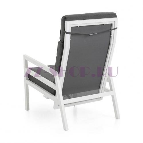 Удобное Кресло с регулируемой спинкой изготовлено из белого алюминия с текстилен серыми подушками.- brafab