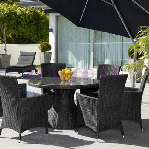 Оно выполнено из плоского 7-мм искусственного ротанга черного цвета на алюминиевом каркасе.