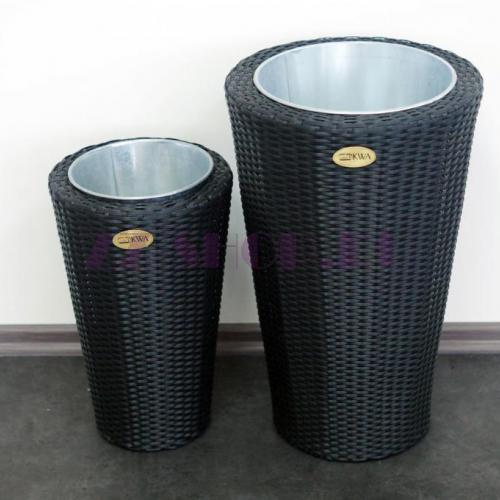 Цветочницы выполнены из искусственного ротанга черного цвета, форма - круглая.