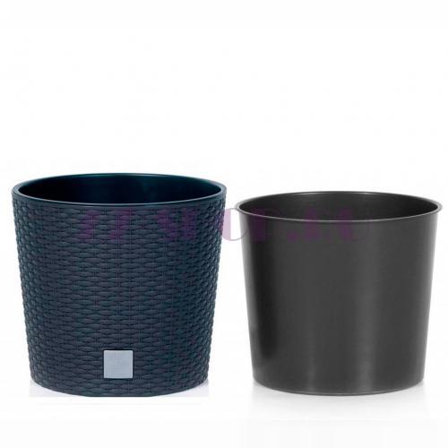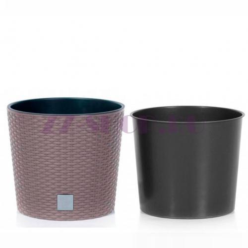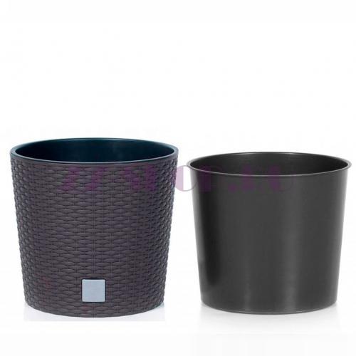 Простой круглый горшок с текстурой из ротанговой косы. Надпись на гербе коллекции Рато. В комплекте со специально разработанной вставкой.