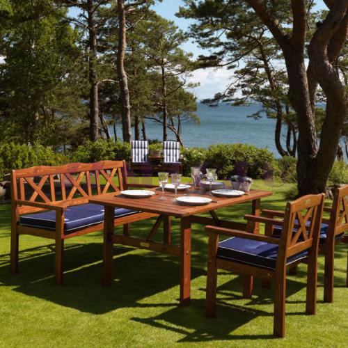 Стол Solliden 970022 выполнен из массива сосны, окрашенного в цвет капучино.