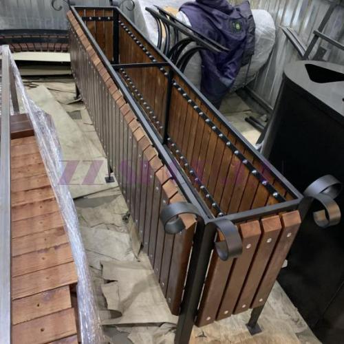 Красивый и функциональный вазон, который отлично подойдет для любой парковой зоны, зеленого сквера и оформленной территории торгового центра, как для посадки цветов, так и для небольших декоративных деревьев (требуется крепление для предотвращения опрокидывания). Этот вазон сочетает лучшие черты классического оформления, эффектность натурального дерева и прочность металлической конструкции. Возможность изготовления в широкой цветовой гамме делает цветочницу привлекательной для обустройства любого экстерьера.Материалы: